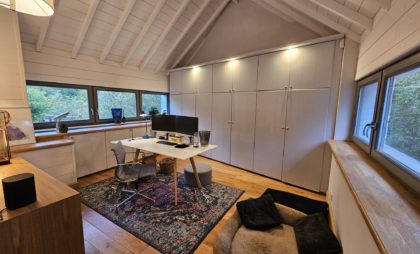 Un espace bureau de 13 m² avec un accès vers la terrasse en façade arrière orientée OUEST;
