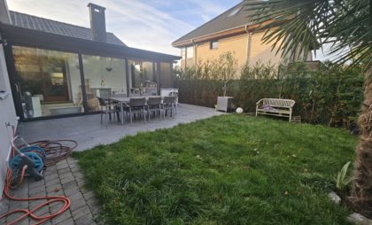 Le bungalow dispose également d’un accès au sous-sol d’environs 140 m², idéal pour le rangement, le stockage ou des aménagements futurs.