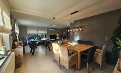 Le séjour lumineux de 43 m² se compose d’un salon équipé d’un air conditionné, idéal pour le confort en toute saison, et d’une salle à manger ouverte en partie sur la cuisine qui est équipée et qui offre une ergonomie parfaite pour cuisiner au quotidien.
