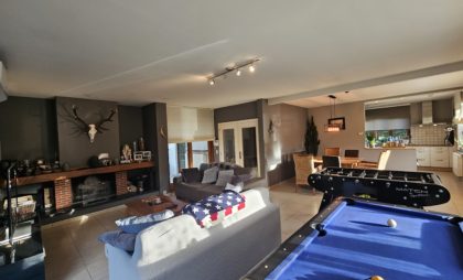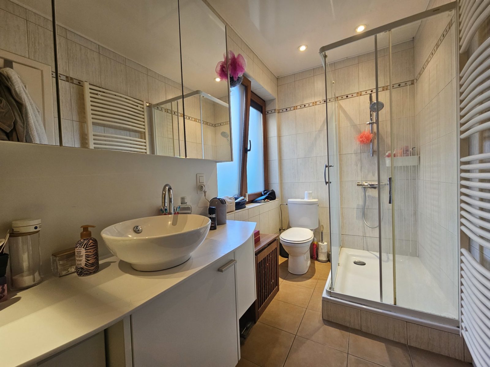 Dès l’entrée, un hall avec vestiaire et une toilette invitée avec lave-main vous accueillent et donnent le ton : fonctionnalité et espace sont au rendez-vous.